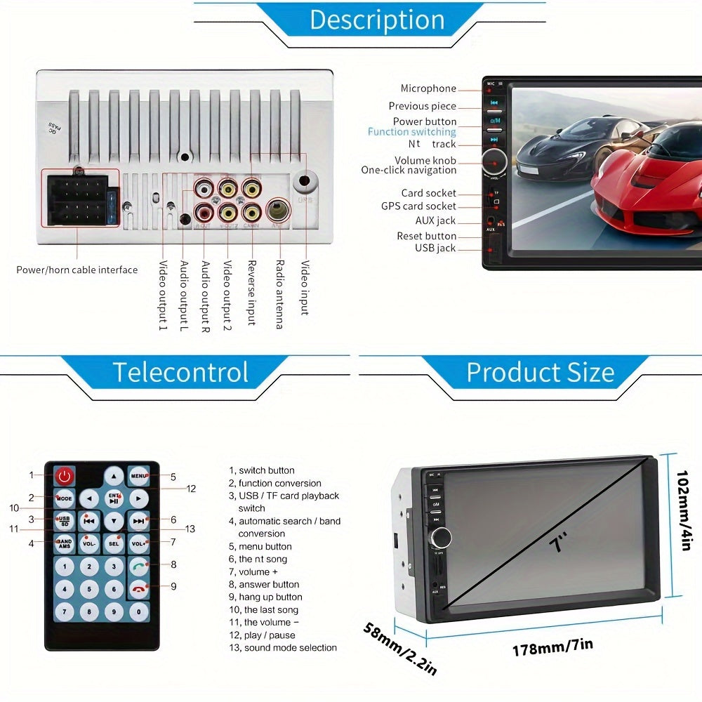 O Bileeko 2 DIN Car Stereo combina tecnologia moderna e funcionalidade, oferecendo tela HD touchscreen, conectividade wireless, suporte para cartões USB/SD, câmera de segurança integrada, controle de volante e MP5 Player. Compatível com Mirror Link, permite espelhar seu smartphone no rádio do carro, proporcionando acesso fácil a aplicativos, música e vídeos diretamente no painel do veículo.