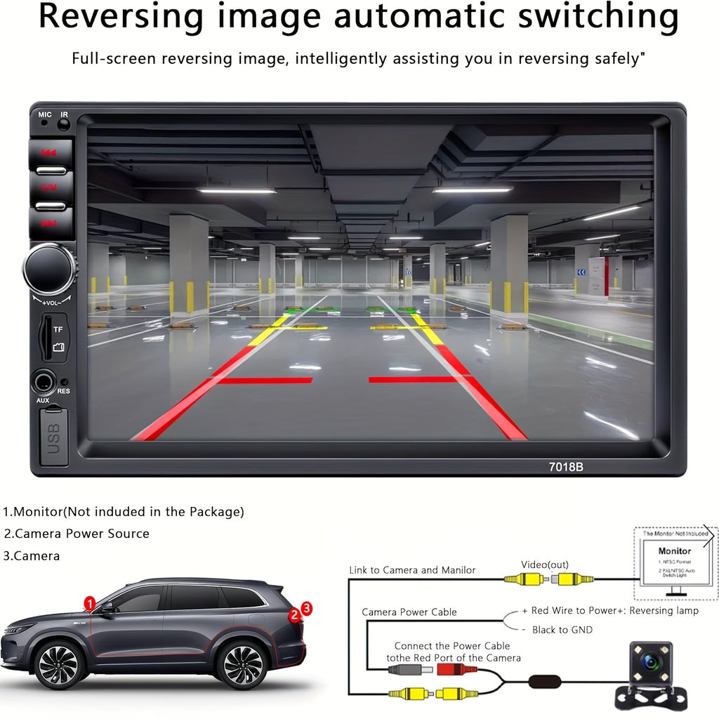 A funcionalidade da câmara traseira ajuda com o estacionamento, e o toque de tela do rádio do carro suporta a entrada de câmara traseira. Ela muda automaticamente para o modo de estacionamento para um estacionamento mais seguro e pode ser conectado a um DVR para gravação de tráfego (câmara de tráfego não incluída).