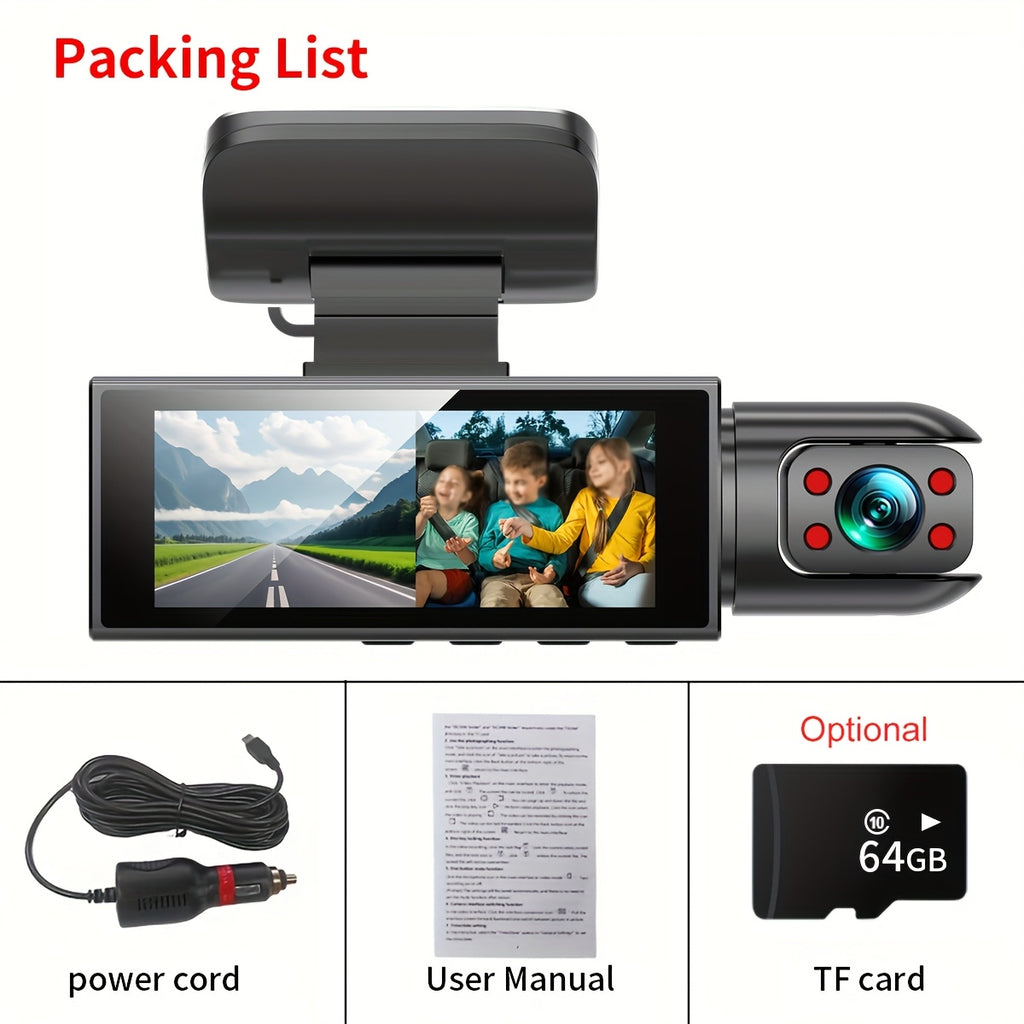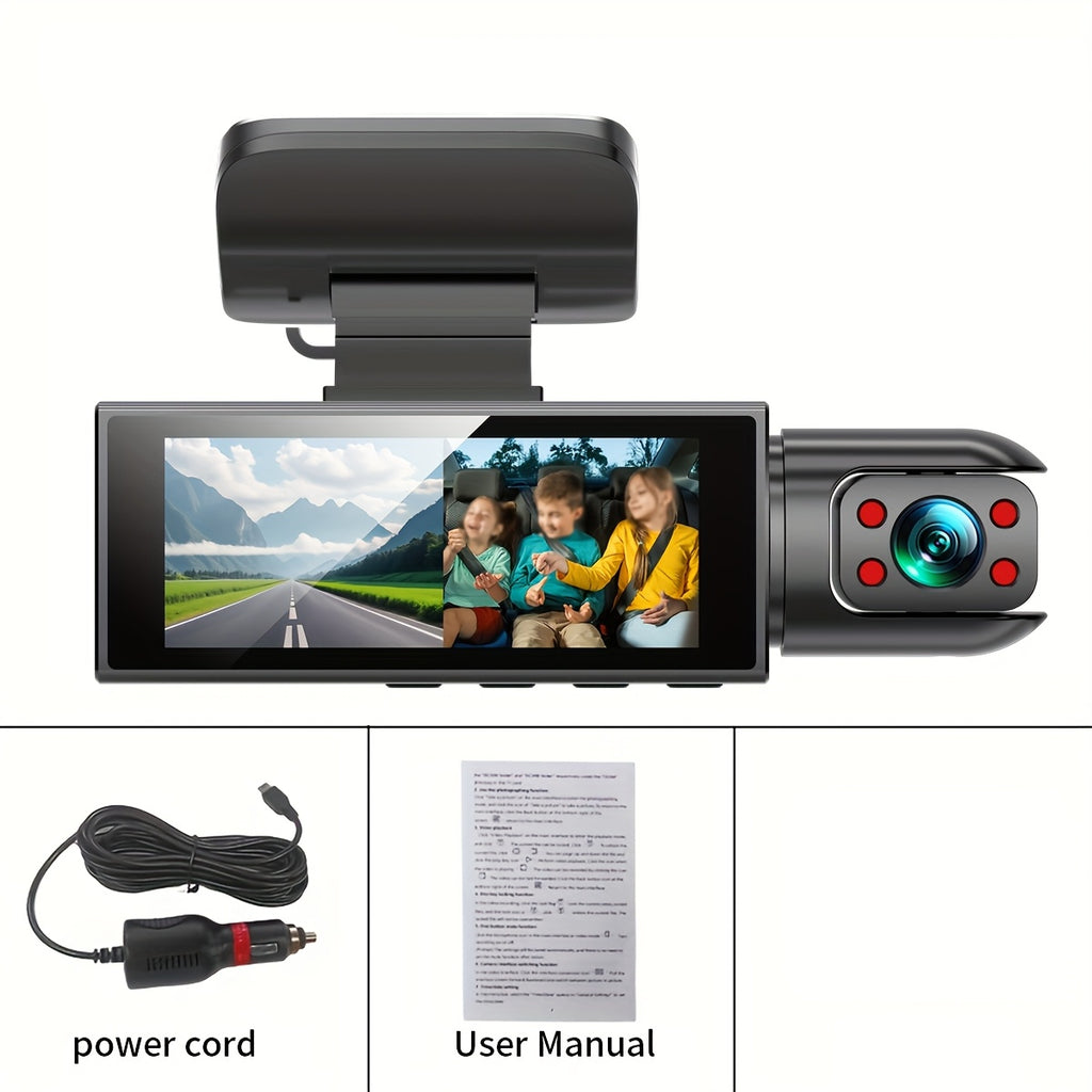 A Câmera de Carro 1080P com Sistema de Lente Dupla oferece gravação simultânea frontal e interna, garantindo visão total do veículo e maior segurança em qualquer situação. Com visão noturna IR, gravação em loop e tela IPS de 8,03 cm, você acompanha tudo em tempo real com imagens nítidas e detalhadas, mesmo à noite.
