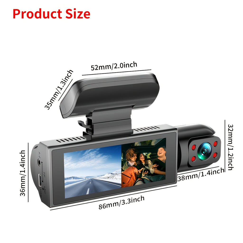 Câmera de Carro 1080P com Câmera Dupla – Frontal e Interna com Visão Noturna IR