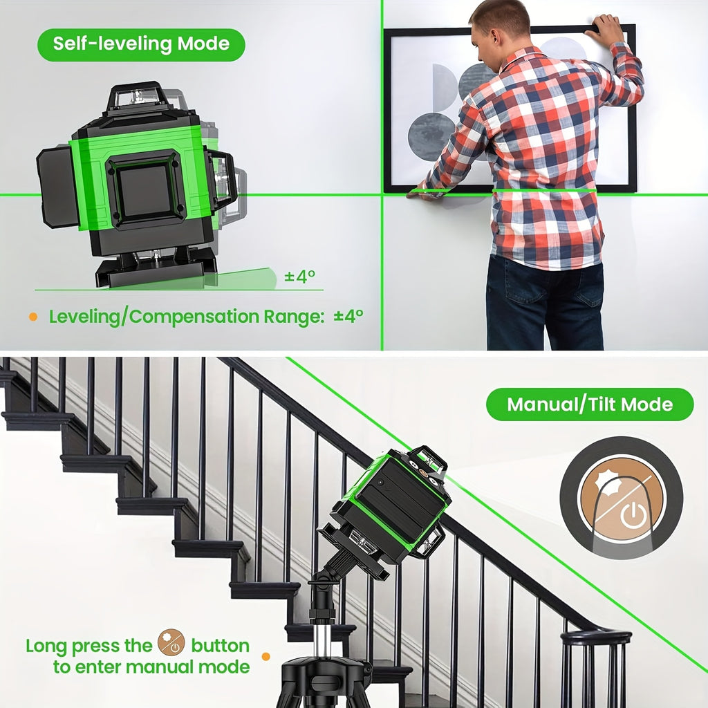 Laser de Linha Cruzada 4D – 16 Linhas, Auto-Nivelamento com Bateria Recarregável