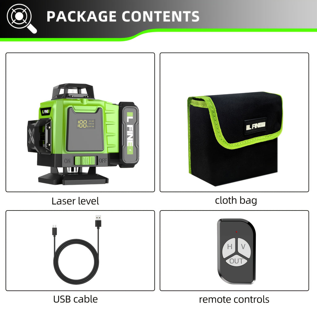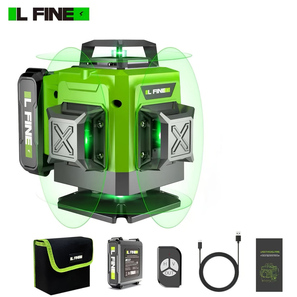 O Nível Laser de 16 Linhas oferece projeção completa horizontal e vertical em 4D, garantindo medições precisas em qualquer superfície. Equipado com laser verde de alta visibilidade, visor digital e bateria recarregável, ele é ideal para reformas, construção e projetos DIY, proporcionando alinhamento rápido e confiável.