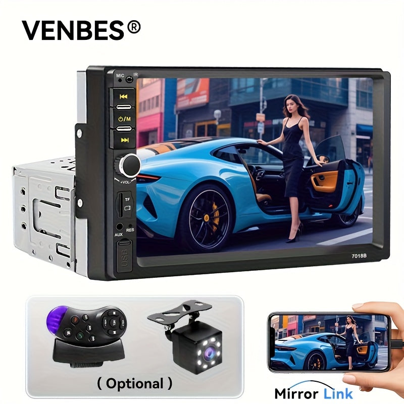 VENBES Rádio para Carro 7" – Navegação Gratuita, Mirror Link e MP5 Player
