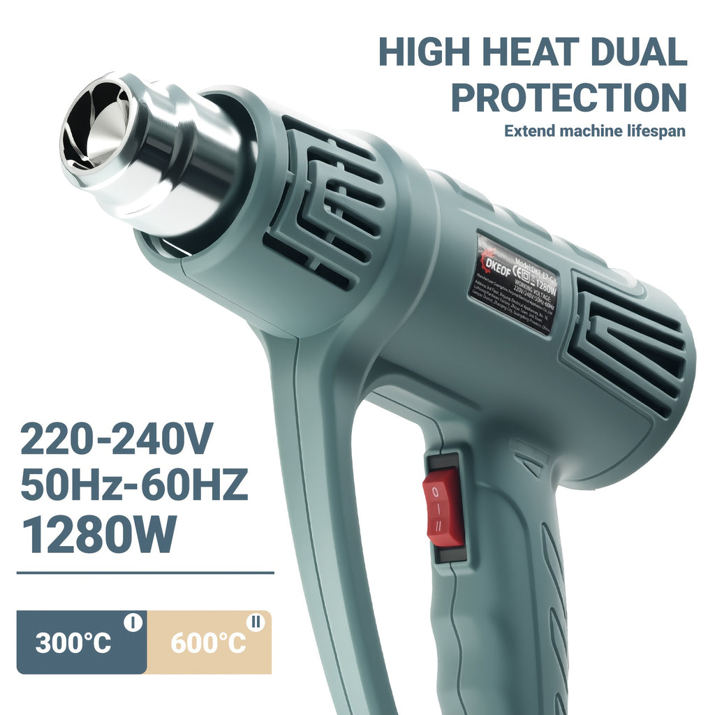 DKEOF Pistola de Ar Quente 1280W – Precisão e Potência para Seus Projetos