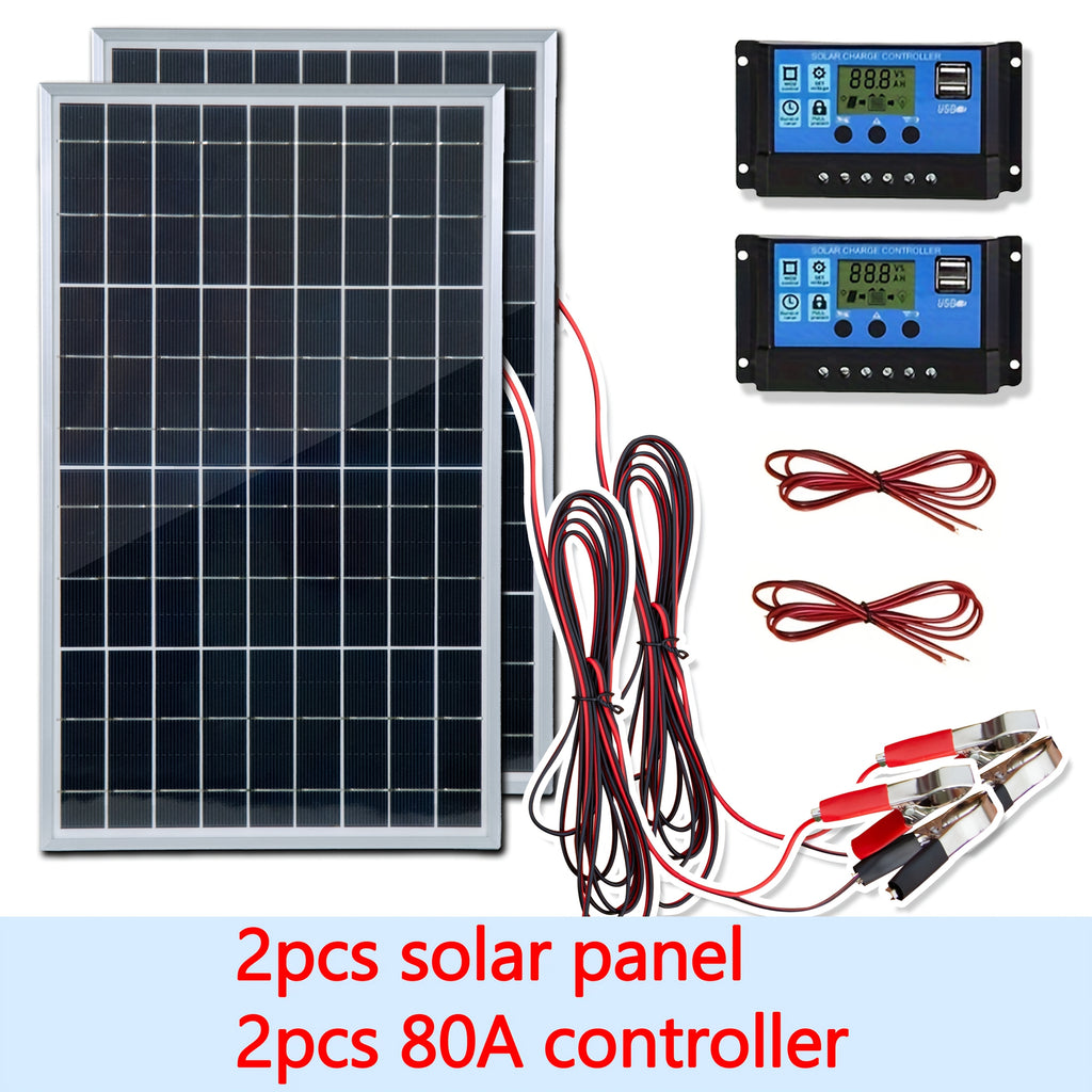 O Conjunto de Painel Solar com Controlador 80A/100A é ideal para quem busca energia limpa e portátil em aventuras ao ar livre. Perfeito para campismo, autocaravanas, barcos e situações de emergência, permite carregar telemóveis, lanternas e outros dispositivos USB, oferecendo autonomia onde não há eletricidade.