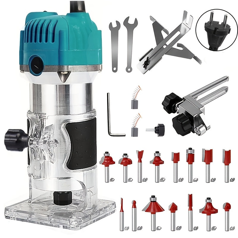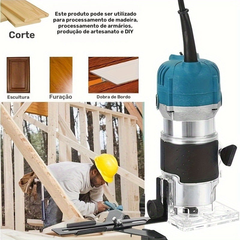 Máquina de Fresar em Madeira – Router Elétrico 220–240V com Função de Ranhura e Kit de Brocas